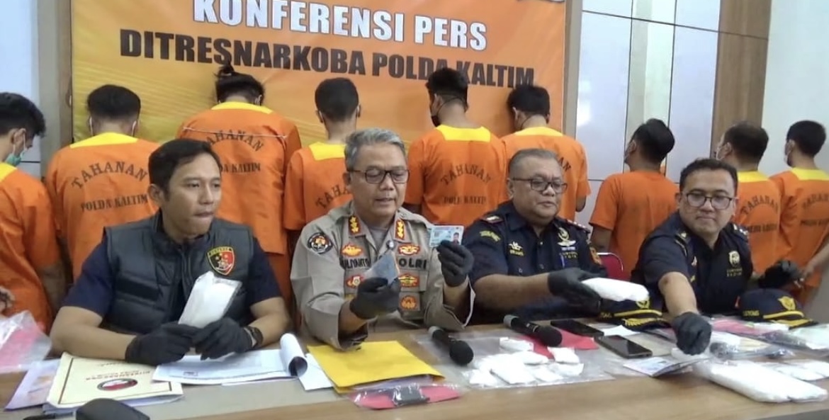 Expresi — Polda Kaltim dalam waktu dua minggu mengungkap 6 kasus narkoba. Sita bukti 2,692 kilogram sabu. Tangkap 10 tersangka.