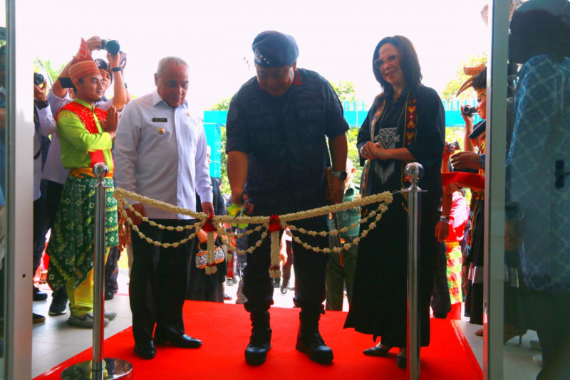 Usai penekanan tombol, Kepala BNN RI Komjen Petrus Rainhard Golose bersama istri Barbara Golose didampingi Gubernur Isran Noor melakukan pemotongan pita tanda dioperasionalkan Laboratorium BNN RI Daerah Samarinda, sekaligus tour fasility laboratorium.