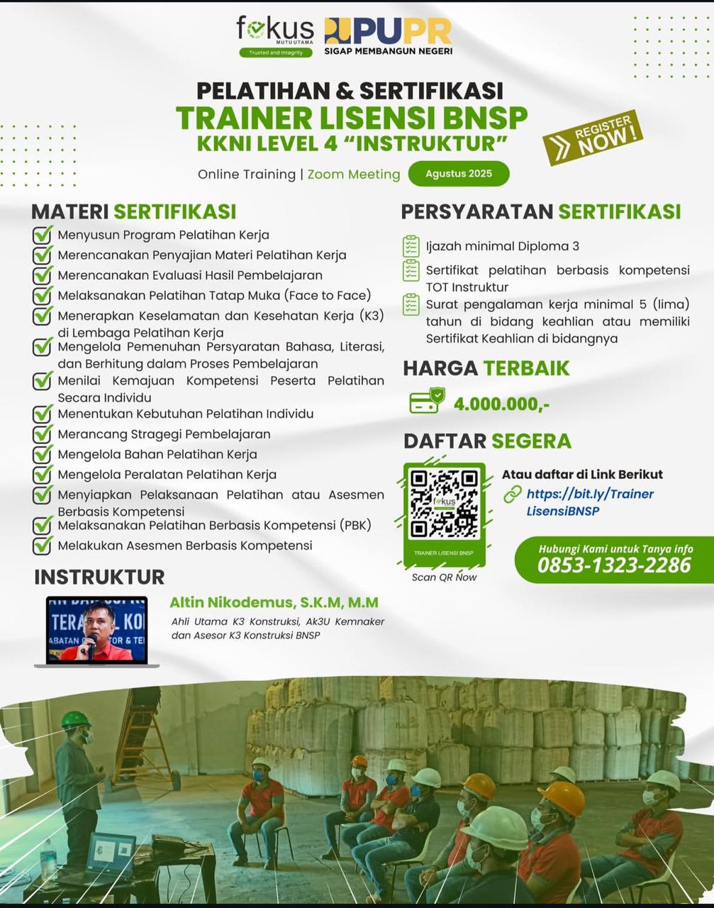 Kata dia, Bina Konstruksi DPU Kukar bekerja sama dengan lembaga pelatihan Fokus Mutu Utama, dan menghadirkan narasumber dari tingkat nasional, yakni Altin Nicodemus.